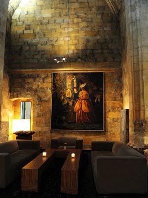 Starck)和沃斯(RoderickVos)等這些國(guó)際設(shè)計(jì)界“超白金”設(shè)計(jì)師的現(xiàn)代時(shí)尚家具,哥特式尖頂下穹頂上宗教故事的壁畫(huà),搭配上透明玻璃的電梯,一座大隱于市的教堂酒店就這樣誕生了。