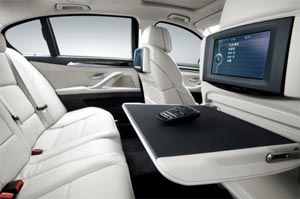 后排都標(biāo)準(zhǔn)配備了音頻系統(tǒng)的控制單元,包括集成在中央扶手中的一個控制器?烧郫B并帶照明的化妝鏡以及前后排的兩個杯座同樣是標(biāo)準(zhǔn)配置。后排獨特的閱讀燈和在乘客向下移動中央扶手時可打開的冷藏箱,作為選裝配置提供。為BMW