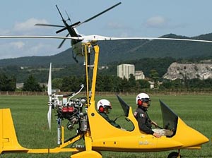 Gyro公司生產的M-22旋翼機是一款適合普通飛行愛好者的小型飛機,這款飛機有著與普通直升機相似的外形,同樣是頭頂著一副大直徑的旋翼,而區(qū)別就在于旋翼機除了旋翼外還帶有一副提供前進動力的螺旋槳。