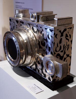 老相機是過去時間的承載,孫曉晨的雕塑放大了老相機,便無形中放大了過去。來自上世紀80年代的幸福牌相機背后的故事,二戰(zhàn)時期限量版相機經(jīng)歷的奢華與煙火的故事,這些隱在背后的靈魂,事隔多年現(xiàn)在好像又被孫曉晨的咔嚓系列雕塑喚醒,你會被這些背后隱藏的靈魂帶到隱隱約約的故事里面去。