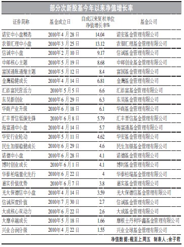 今年以來,雖然A股市場持續(xù)震蕩,但今年成立的次新股票基金普遍表現(xiàn)不俗,超七成次新股票基金取得正收益。