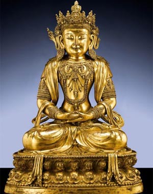 而今年的春拍,雖然書畫再次成為中國藝術(shù)拍賣市場(chǎng)交易的重中之重,但佛像類也表現(xiàn)積極。瀚海金銅佛像兩個(gè)專場(chǎng)總成交9200萬元,其中“十九世紀(jì)尼泊爾摩耶夫人造像”以1120萬成交。香港佳士得春拍,“明宣德御制鎏金銅無量壽佛坐像”以7010萬港元成交。