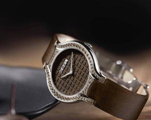 這系列的腕表表盤十分特別,壓成了巧克力狀的花紋,看起來(lái)十分誘人。機(jī)芯同樣應(yīng)用瑞士石英,表帶則是光滑質(zhì)感的皮革,搭扣處則采用Ebel傳統(tǒng)的蝴蝶型搭扣相連接。價(jià)格和生產(chǎn)數(shù)量目前還不可知。