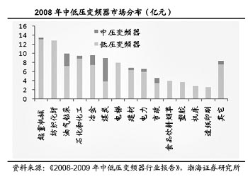 變頻器和高效電機(jī)是節(jié)能減排的先鋒。渤海證券發(fā)布的報(bào)告稱,我國(guó)發(fā)電機(jī)耗電量占總發(fā)電量的66%以上,發(fā)電機(jī)運(yùn)行效率低于國(guó)外先進(jìn)水平約10至20個(gè)百分點(diǎn),運(yùn)行效率低下造成的電量浪費(fèi)幾乎相當(dāng)于三個(gè)三峽電站,因此提高發(fā)電機(jī)運(yùn)行效率是重要的節(jié)能措施。變頻器調(diào)速和使用高效電機(jī)是可行的兩種節(jié)能方式,高壓變頻器市場(chǎng)規(guī)模近千億,未來(lái)兩年將保持30%以上增速,但目前通用領(lǐng)域價(jià)格戰(zhàn)硝煙彌漫,市場(chǎng)格局仍在形成中;中低壓變頻器仍處于進(jìn)口替代過(guò)程,國(guó)產(chǎn)化率將逐步提高,未來(lái)有望出現(xiàn)國(guó)內(nèi)的龍頭企業(yè)。目前高效電機(jī)市場(chǎng)應(yīng)用比例仍較低,但在最低能效標(biāo)準(zhǔn)及補(bǔ)貼政策支持下,我們認(rèn)為高效電機(jī)市場(chǎng)即將啟動(dòng),未來(lái)市場(chǎng)應(yīng)用比例將大幅上升。