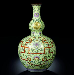 其中,清乾隆淺黃地洋彩錦上添花“萬壽連延”圖長頸葫蘆瓶以2億5266萬港元高價成交,刷新中國工藝品及瓷器之世界拍賣紀(jì)錄,該拍品由著名中國工藝品收藏家鄭張永珍博士投得。此前瓷器拍賣成交價世界最高紀(jì)錄一直由2005年7月12日英國倫敦佳士得公司拍出的一件青花瓷(鬼谷子下山)保有,成交價2.3億人民幣。