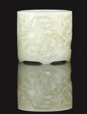 小型精品白玉現(xiàn)身拍場后總是取得驚人的成績。2008年乾隆帝御寶交龍鈕“乾隆御筆”白玉璽,曾以6338萬港元成交,創(chuàng)造了白玉世界拍賣紀(jì)錄。而早前香港佳士得舉辦的拍賣會(huì)上一件清乾隆《白玉鶴鹿同春筆筒》也以5408.75萬港幣成交。