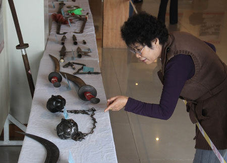 滄州傳統(tǒng)武術(shù)器械展近日開(kāi)展。此次展覽展出的200余件“武術(shù)之鄉(xiāng)”河北滄州武術(shù)世家及明清時(shí)期傳統(tǒng)武術(shù)器械珍品,以及一些罕見(jiàn)的明清武術(shù)文獻(xiàn)資料,都是由當(dāng)?shù)孛耖g收藏人士收集、征集到的。所展的武術(shù)器械及文獻(xiàn)資料大都是首次亮相。圖為市民參觀展出的古代傳統(tǒng)武術(shù)器械。新華社發(fā)