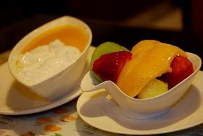 的,是這里的甜品絕不會固步自封,永遠(yuǎn)有新點(diǎn)子滿足客人尋求新奇的口腹之欲。最成功的點(diǎn)子,就是此店獨(dú)創(chuàng),模仿咸食賣相及做法的芒果撈河。所指的“河”,