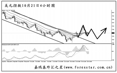 受上述因素影響,美元指數發(fā)力將圖中的下降通道上沿升破,后市能否繼續(xù)順利挑戰(zhàn)74.15的強支撐成疑。4小時圖均線系統(tǒng)已被升破,同時道氏高點77.90的阻力也成功越過,美元指數有望展開一波明顯反彈,目標指向79.00一線。但想直接逆轉此前的跌勢有很大難度,預計短線美元指數還將走出一定的震蕩節(jié)奏。