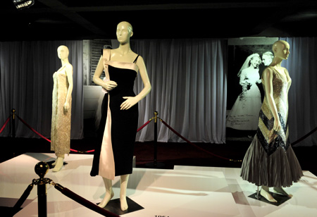 圖為在北京“世界名人禮服展“上拍攝的美國(guó)前第一夫人杰奎琳·肯尼迪、知名影星伊麗莎白·泰勒和麗塔·海沃斯定制的禮服(由左至右),這三件禮服已分別被法國(guó)盧浮宮、意大利博物館和紐約博物館收藏。