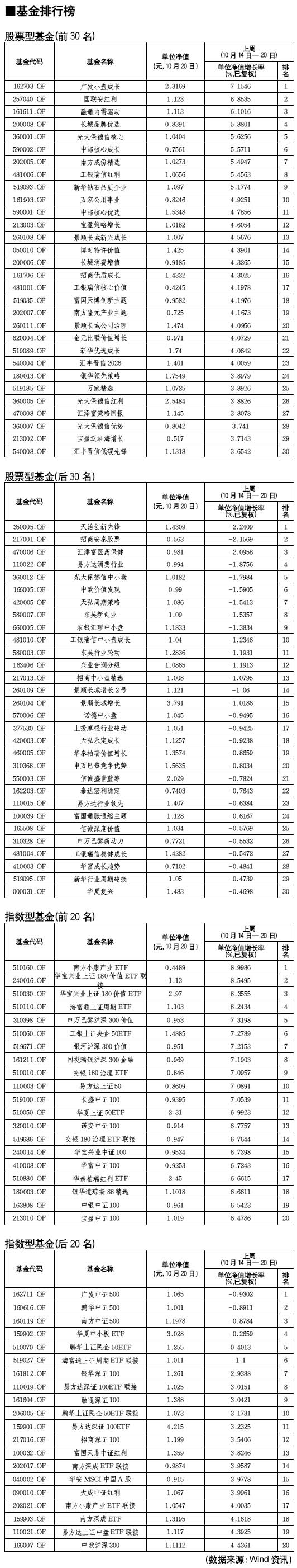 股票型基金排行榜[2010-10-22]