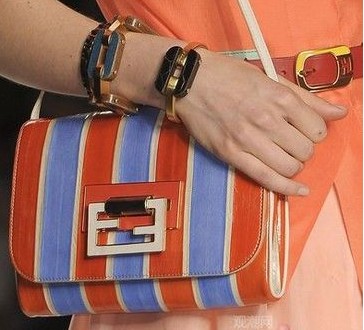 2011春夏時(shí)裝周不僅讓我們領(lǐng)略到了時(shí)裝的魅力,而且各個(gè)大牌都將新一季的手袋單品紛紛帶進(jìn)了秀場(chǎng)。在即將到來的2011春夏,什么款式的手袋能夠令你赫然出眾? Fendi 2011手袋更適合被形容為趣味拼色,尤其Fendi這一季的手袋在珊瑚色和藍(lán)色中添加了一點(diǎn)糖果色的條紋,都讓這一季塑料手袋充滿了童趣的意味。