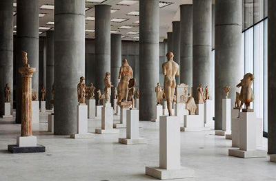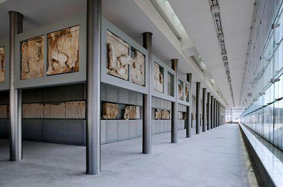 博物館的第二層與第三層藉由玻璃坡道相連,展出永久館藏的4000件古物,古物年代由古希臘時期到羅馬帝國晚期,包括許多件曾經(jīng)作為衛(wèi)城神廟裝飾物的雕像都在在自然光線下陳列,希臘官方希望新衛(wèi)城博物館的完成可以催促其他國家歸還過去幾百年來以各種手段所獲取的希臘古物,尤其是自1817年就已被搬入倫敦大英博物館的珍貴埃爾金石雕(Elgin