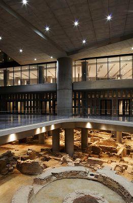 最底下一層漂浮在古老雅典城市的遺址上,由160多根纖細的混凝土柱支撐。