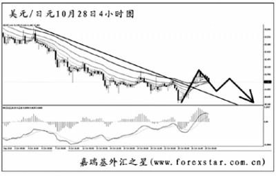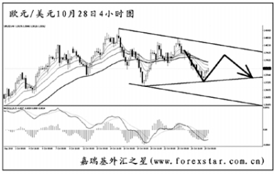 ▲歐元兌美元在跌破上升趨勢(shì)線(xiàn)后高位盤(pán)整,短線(xiàn)陷入了震蕩走勢(shì)。從日線(xiàn)圖上看,歐元的漲勢(shì)依舊延續(xù),目前判斷筑頂成功為時(shí)尚早。圖中的走勢(shì)為一種演變,若匯價(jià)形成三角形中繼形態(tài),則后市再創(chuàng)新高并不是一件難事。即使歐元向下突破,還有旗形的下沿具備較強(qiáng)的支撐作用。