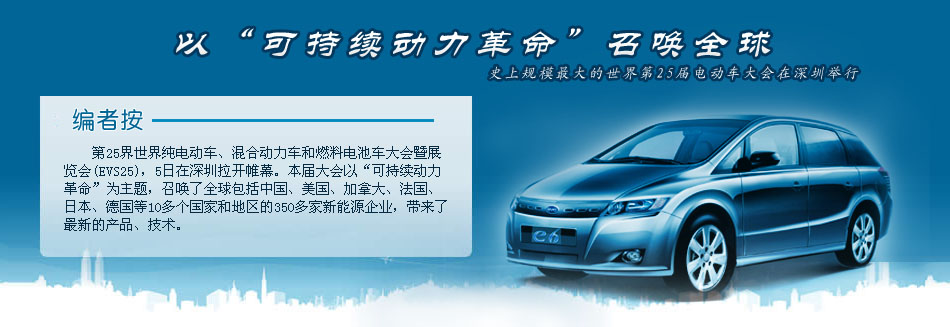 上汽作為全國汽車行業(yè)的龍頭企業(yè),也是新能源汽車領(lǐng)域的主力軍和先行者。記者了解到,在深圳召開的第二十五屆世界純電動車、混合動力車和燃料電池車大會暨展覽會(EVS25)上,上汽新能源汽車集團軍以最強陣容亮相。[詳細(xì)] |