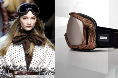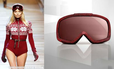 上一季,飛行員裝扮是潮流的主旋律,飛行員帽子、翻領(lǐng)夾克夾克以及大大的墨鏡。而這一季,斯堪的納維亞風(fēng)格的滑雪look才是最佳之選。2010秋冬D&G秀場(chǎng)是最佳的詮釋?zhuān)L厣砩系淖畲罅咙c(diǎn)莫過(guò)于鑲有水晶的滑雪鏡了。