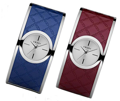 2010秋冬推出斜紋logo系列腕表于寶藍(lán)、紅、黑、金及銀色金屬質(zhì)地表腕上刻印的品牌標(biāo)志組成優(yōu)雅的棋盤格紋。表面及表帶都為不銹鋼材質(zhì)打造,正面有著斜logo的連續(xù)圖樣交叉設(shè)計(jì),扣環(huán)式的表帶可隨手腕大小調(diào)整。在3、6、9、12點(diǎn)鐘方向有著銀色的小時(shí)刻度顯示,展現(xiàn)簡約的時(shí)尚風(fēng)格。DKNY