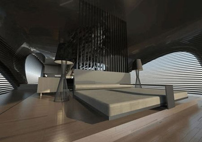 spa,全世界最高級的健身房,電影院當然也是必不可少的。Beluga的主甲板前面有一個14米長的游泳池,并且在兩個平行的休閑區(qū)還設(shè)有雞尾酒吧。車庫可以容納兩輛普通房車,在空置時可以很輕松的變成一家夜總會,舞池和高檔音響肯定是必備的。