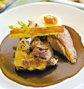 鴨肉入口滑嫩,完全沒有腥味,濃香可口。品嘗血鴨后,侍者送給記者一張紀(jì)念卡片,正面是德萊爾制作血鴨油畫,背面印有編號:1088268。原來,由于血鴨聲名遠(yuǎn)揚,在巴黎出現(xiàn)假冒產(chǎn)品。為“防偽”,每只鴨子都編了號。