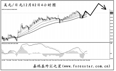 ▲美元兌日元繼續(xù)著自己反彈的腳步,目前已經(jīng)將日線圖的均線系統(tǒng)升破。雖然圖中出現(xiàn)了角度明顯的MACD頂背離信號,但匯價的漲勢很難改變。美元兌日元上方面臨的首要強(qiáng)阻力是9月中旬日本央行干預(yù)后的高點(diǎn)85.95,只有升破此位才能展開更為明顯的上行。