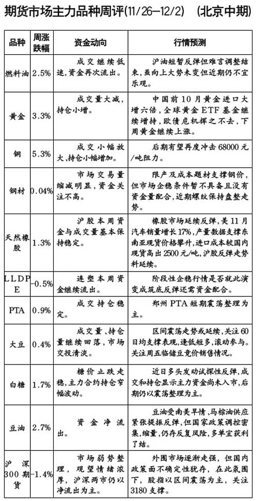 期貨市場(chǎng)主力品種周評(píng)[11.26-12.2]