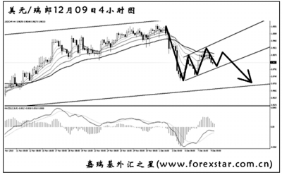 ▲美元兌瑞郎仍然運行在日線圖的大旗形下跌中繼內(nèi)部,若這個旗形向下突破,則還將會有很深的一輪探底走勢。圖中匯價形成了一個小旗形通道,均線系統(tǒng)壓制排列,配合著中線的方向來看,美元兌瑞郎選擇繼續(xù)下行的概率很大,操作上以等待小時圖出現(xiàn)向下的主次節(jié)奏后做空為主。