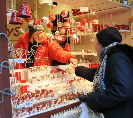 在瑞典首都斯德哥爾摩老城的“大廣場”上,有一個非常有名的圣誕市場,每年從11月22日開市,一直延續(xù)到平安夜前一天的12月23日。這個瑞典最古老的圣誕市場已有數(shù)百年歷史,至今仍然保持著中世紀風格。這里不僅周邊環(huán)境傳統(tǒng)氣息非常濃郁,而且銷售的均為傳統(tǒng)的圣誕節(jié)用品,其中許多用品已在瑞典流傳了數(shù)百年。每年圣誕節(jié)來臨之前,不僅前來購物的當?shù)鼐用窠j繹不絕,還有不少游客慕名而來領略這個古老市場的風采。記者 吳平/斯德哥爾摩報道