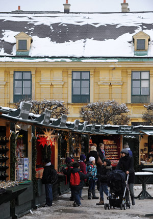 每年11月中旬,奧地利首都維也納市內(nèi)的20處大大小小的圣誕市場陸續(xù)開放,并一直開放至圣誕節(jié)前后,早早為整個城市營造節(jié)日氣氛,也成為市民和游客冬季休閑好去處。圖為孩子們在美泉宮圣誕市場游玩、購物。美泉宮坐落在維也納的西南部,曾是哈布斯堡王室的夏季行宮,總面積2.6萬平方米。這座氣勢磅礴的巴洛克風格宮殿和花園,如今是維也納最負盛名的旅游景點。美泉宮及其花園已被聯(lián)合國教科文組織列入《世界文化遺產(chǎn)名錄》!