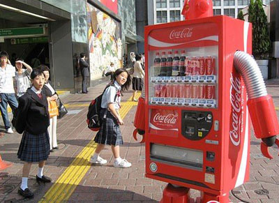 這是可口可樂公司結(jié)合機器人技術(shù)最新推出的自動售貨機機器人。在東京澀谷車站,行走的機器人引起幾個女學(xué)生的好奇。說實話,還真有點擔(dān)心這些大家伙的安全性,會不會象一些電影中的鏡頭,當(dāng)你站在它前面準(zhǔn)備買一瓶可樂的時候,這個東西會腳步不停的從你的頭上跨過去。