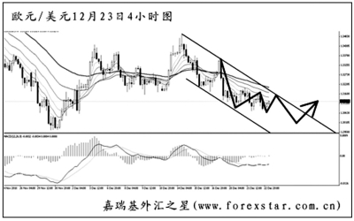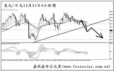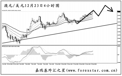 ▲澳元兌美元在日線圖上升趨勢線的依托下節(jié)節(jié)攀高,目前再度挑戰(zhàn)1.0000的整數(shù)關(guān)卡阻力。由于右肩走的過大,所以澳元形成頭肩頂形態(tài)的概率已然不高。短線應(yīng)本著繼續(xù)做多澳元為主思路,匯價有望再度挑戰(zhàn)11月初創(chuàng)出的1.0180高點阻力。