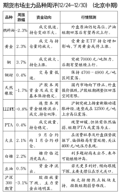 期貨市場(chǎng)主力品種周評(píng)[12.24-12.30]