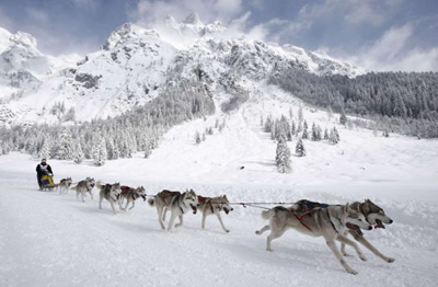 狗拉雪橇是風(fēng)靡于阿拉斯加的一項(xiàng)運(yùn)動(dòng)。一群愛(ài)斯基摩犬用雪橇拉著你加速前進(jìn)或者度過(guò)一小段長(zhǎng)途的旅行,只要你想,這種待遇可以隨時(shí)享受。位于塔納納河的Alaska
