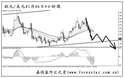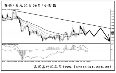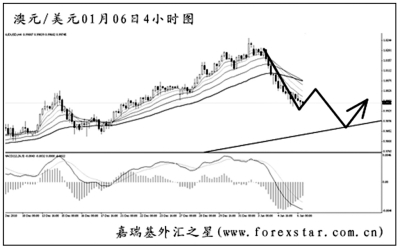 ▲澳元兌美元小幅創(chuàng)出日線圖新高之后急速下行,形成一個2B原理走勢。匯價下跌斜率很大,已經(jīng)將最近的一條下降趨勢線跌破,圖中均線系統(tǒng)即將轉(zhuǎn)為空頭排列。澳元下方面臨的首要強(qiáng)支撐為日線圖的另外一條上升趨勢線,位置在0.9860一線,跌破后方可宣告澳元階段性筑頂?shù)某晒Α?/P>
