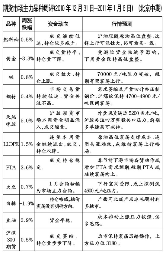 期貨市場(chǎng)主力品種周評(píng)[2010.12.31-2011-01-06]