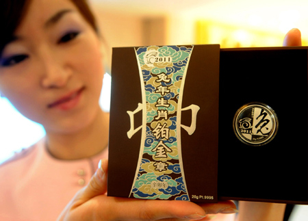 當(dāng)天,中國(guó)金幣總公司在京發(fā)行限量版兔年鉑金紀(jì)念章。據(jù)介紹,該套產(chǎn)品包含5g,10g,20g三種規(guī)格,均以99.95%鉑金鑄成。每種規(guī)格的發(fā)行量分別為1800、1200、600枚。鉑金紀(jì)念章的正反面圖案為線兔造型,采用高浮雕與鏡面及噴砂工藝制作,具有一定的收藏價(jià)值。新華社發(fā)