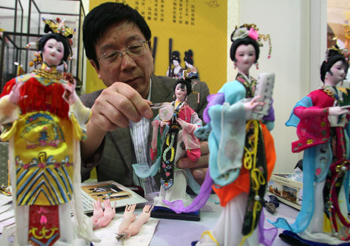 記者最近就我國(guó)非物質(zhì)文化遺產(chǎn)的生存狀態(tài)進(jìn)行調(diào)研發(fā)現(xiàn),非遺項(xiàng)目的傳承問(wèn)題仍未完全解決,部分項(xiàng)目甚至面臨“人亡藝絕”的困境。非遺項(xiàng)目傳承人建議,國(guó)家對(duì)他們應(yīng)加強(qiáng)扶持,“扶上馬”,最好再“送一程”。北京絹人傳承人滑樹林在首屆“非遺”博覽會(huì)上展示技藝。