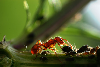 “為了殺死這些害蟲,農(nóng)民不得不使用大量的化學(xué)藥劑。這些化學(xué)藥劑在殺死害蟲的同時也會污染果實本身。這些污染的果實對食用者有很大危害!必(fù)責(zé)該研究項目的尼爾森副教授在奧胡斯大學(xué)的“螞蟻牧場”實驗室里接受采訪時說。