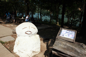 從音樂博物館后門出來,一大片碧綠的青草地就在眼前。綠草茵茵,樹木環(huán)繞,分外怡情。而穿過大草坪,就看到湖邊立著個可愛的大雪人,還有一條長凳。這就是《冬季戀歌》中主人公留下初吻回憶的地方,可愛的雪人正是他們的杰作,旁邊還擺放著兩位主角的照片。坐在長凳上,看著他們含情脈脈的笑容,撫摸著潔白的雪人,重溫“戀歌”場景,再次感受到了純真初戀的美好。