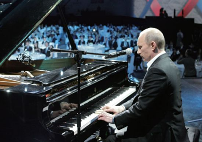 在圣彼得堡慈善晚會上,主持人邀請普京上臺表演,普京說:“如同大多數(shù)人一樣,我不會唱歌跳舞!比欢,他走到臺上一架鋼琴前,用那強健的十指以及略顯尖薄的聲線自彈自唱起來。當然,世人無不稱給力,無不感嘆當年克格勃培訓系統(tǒng)的水平之高。