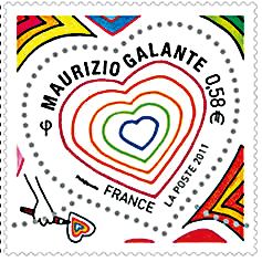 此次提前發(fā)行的法國(guó)情人節(jié)心形郵票,由服裝設(shè)計(jì)師MaurizioGalante根據(jù)其服裝定制精神打造,主題為“colorie-moi”(給我上色),可謂迄今為止情人節(jié)郵票里顏色最豐富、最別出心裁的一款了。