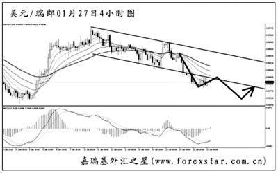 ▲美元兌瑞郎逐步下行,短線的力度有所增強(qiáng),已經(jīng)將圖中震蕩區(qū)間的下沿跌破,短線主客觀方向均下看。從日線圖上分析,中線的跌勢(shì)將一直延續(xù),下方的強(qiáng)支撐在去年底的低點(diǎn)0.9300,預(yù)計(jì)匯價(jià)將向此一帶發(fā)起沖擊,但考慮到此前反彈的動(dòng)能較強(qiáng),直接跌破的概率不大。