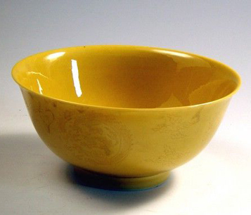 清乾隆款黃釉團(tuán)龍紋碗 |