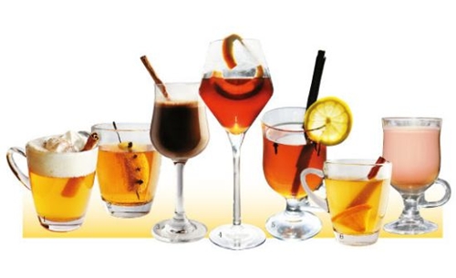 做法:將浸泡著枸杞的黃酒和榛子利口酒混合,放入杯中倒入蜂蜜水加熱,以橙皮裝飾。