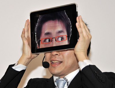 一名日本魔術(shù)師在東京用蘋果iPad平板電腦變魔術(shù)。