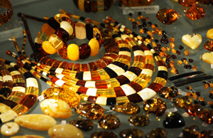 看畢這些大自然的杰作,我來(lái)到博物館的商店,這里有被加工成各種各樣飾品的琥珀出售。琥珀飾品雖然沒(méi)有黃金的耀眼、鉆石的璀璨,卻別有一番含蓄的自然美,帶有幾分神秘色彩。琥珀不但是時(shí)間的象征,而且它顏色橙黃透明,在接近火的時(shí)候顏色還會(huì)發(fā)生變化,非常奇特,再經(jīng)過(guò)能工巧匠的精雕細(xì)琢,就有了造型完美、光滑圓潤(rùn)的琥珀成品。