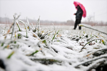 從2月25日夜間開始,山東自西向東喜迎降水,截至27日上午10時,山東平均降水量超過13毫米。這次降水基本都落在了最干旱的魯西南地區(qū),將在很大程度上緩解當?shù)睾登。這是2月27日在山東省青州市拍攝的被積雪覆蓋的冬小麥。新華社發(fā)(王繼林