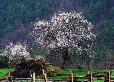 位于林芝縣的嘎拉桃花村,也是賞桃花的最佳地點。一排排盛開的桃花在臺階式綠色麥田的襯托下,整個山坡如同藏族婦女的圍裙耀眼奪目。游客來到這仙境般的桃花村,不僅可以領(lǐng)略到藏族姑娘的熱情好客,還可以體會到勞動的歡樂場面。