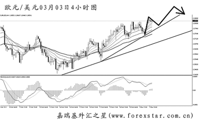 ▲歐元兌美元正在考驗前方高點1.3860的阻力,若成功升破,后市的上升空間將進一步被打開。圖中有兩條上升趨勢線,下方為日線圖形成,上方為4小時圖中畫出,由此可見,歐元短線的上漲力度有所加強。預計匯價有望向趨勢線一帶發(fā)起回調(diào),但后市繼續(xù)沖高的希望很大。
