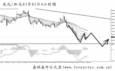 ▲美元兌加元的下跌勢頭良好,圖中趨勢線為日線圖形成,壓制匯價一路下行。目前美元兌加元正在考驗0.9710一線的支撐,預計跌破的概率較大,后市將直指2007年11月低點0.9050附近。小時圖的下跌斜率陡峭,最好等待發(fā)生良好的次要節(jié)奏調(diào)整之后再行入場做空。此時博弈做多為時尚早。